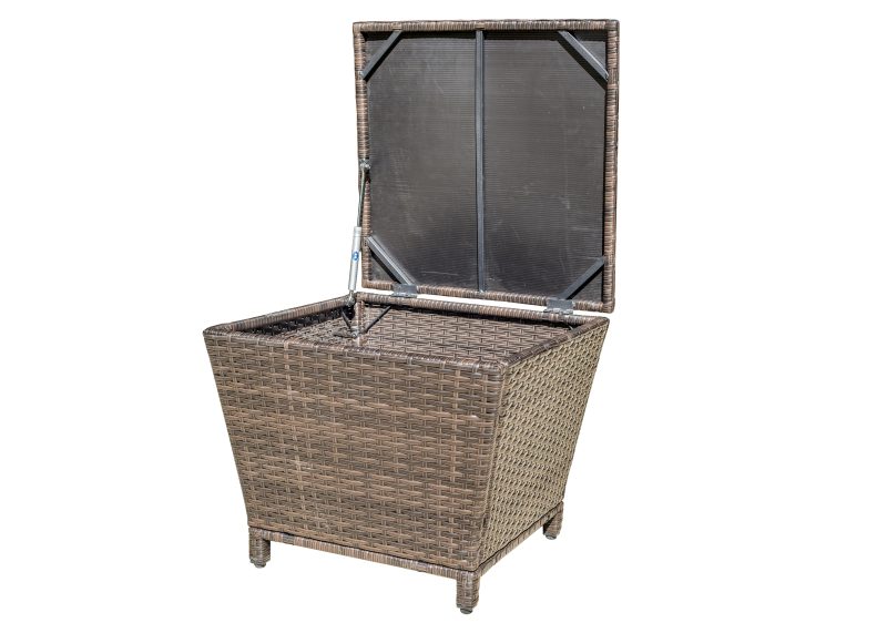 Steel frame, black powder coating, brown flat wicker