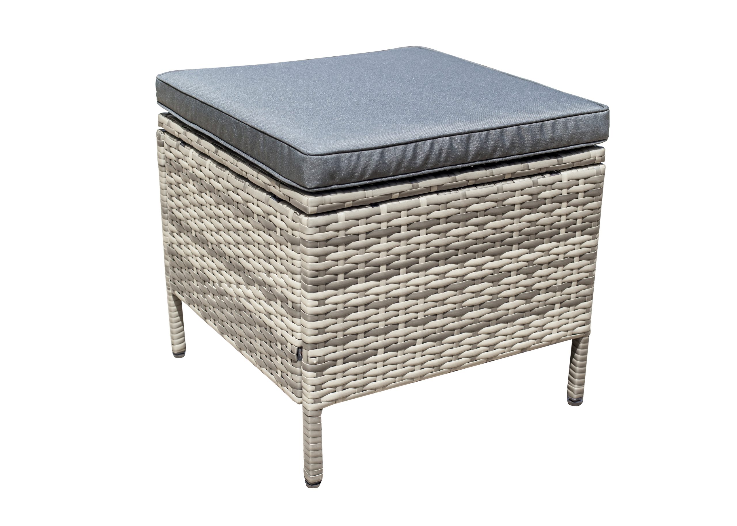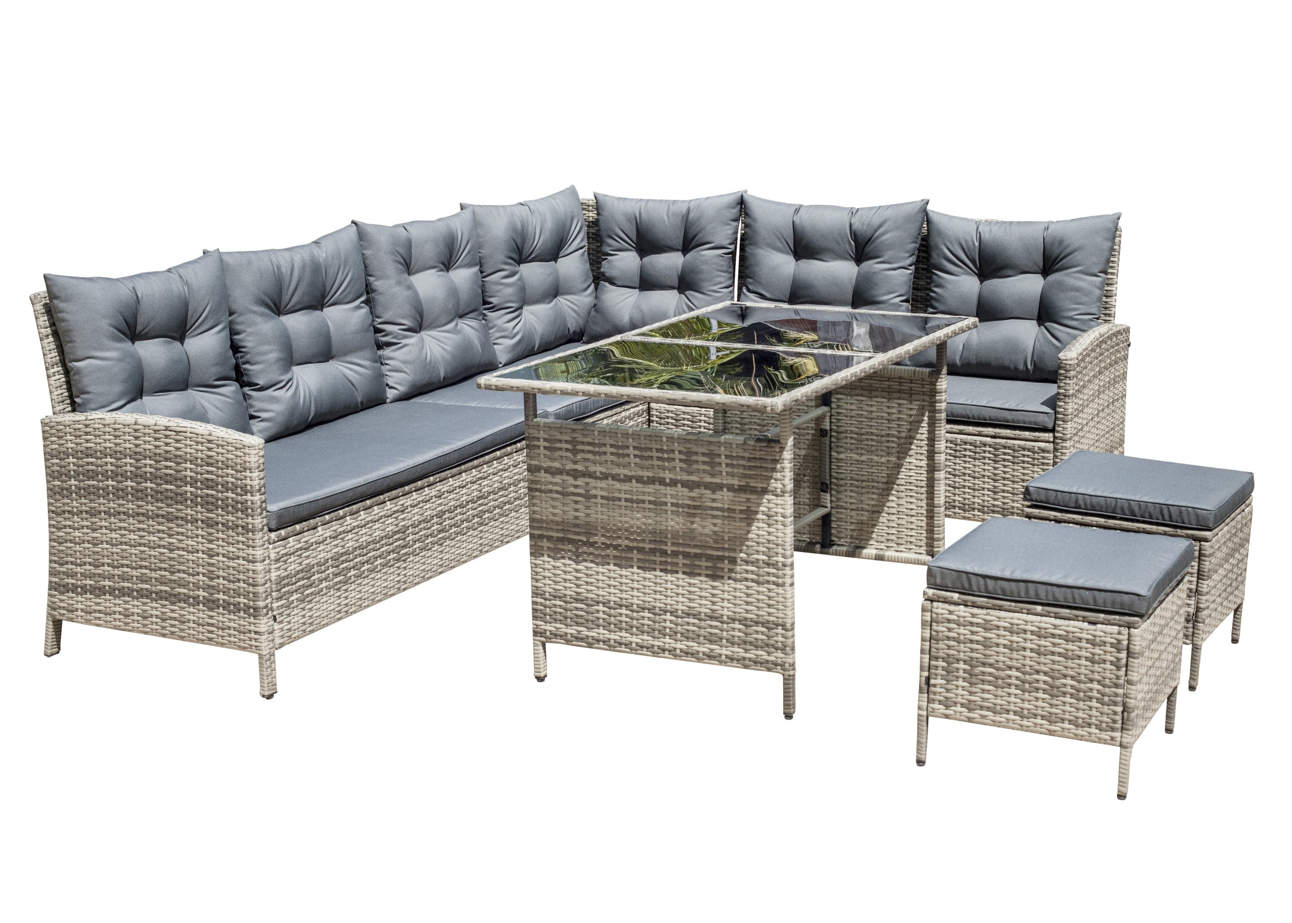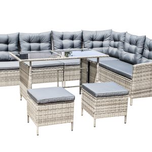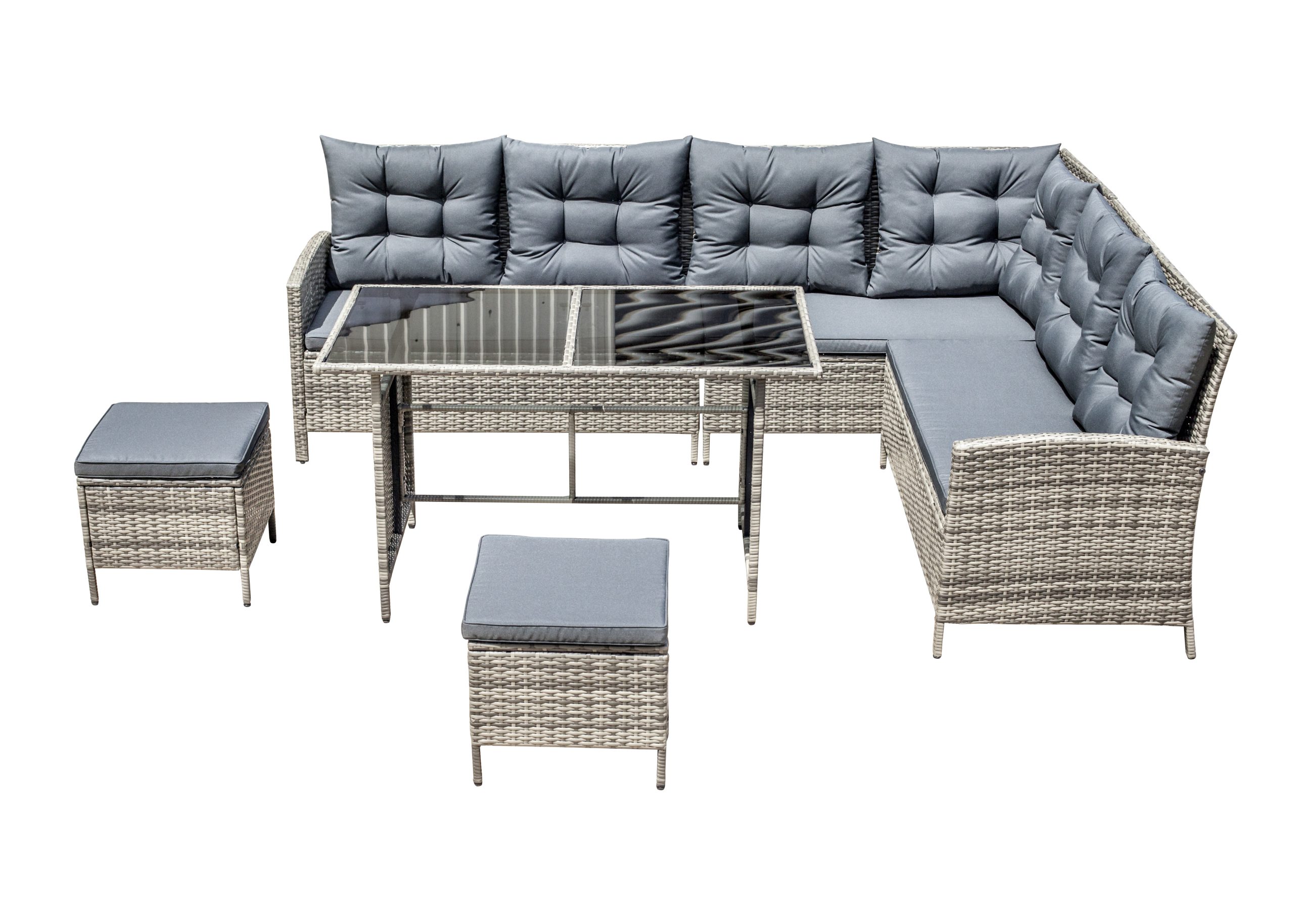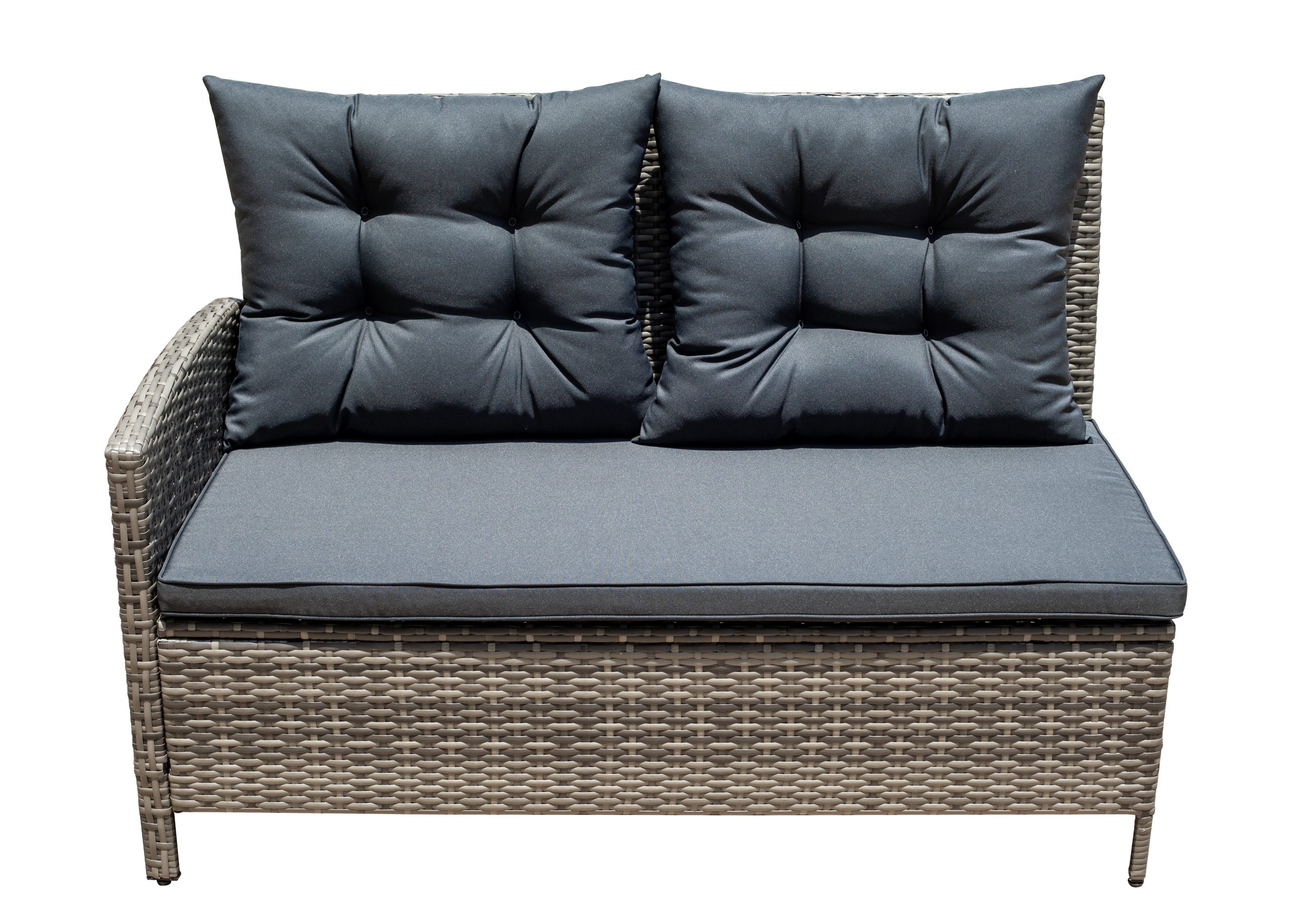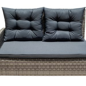 Steel frame ,grey flat rattan, grey seat cushion 5cm and pillow 12cm,