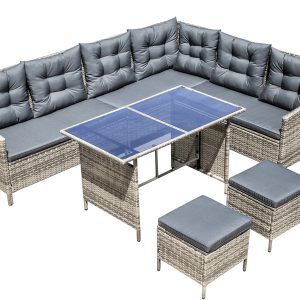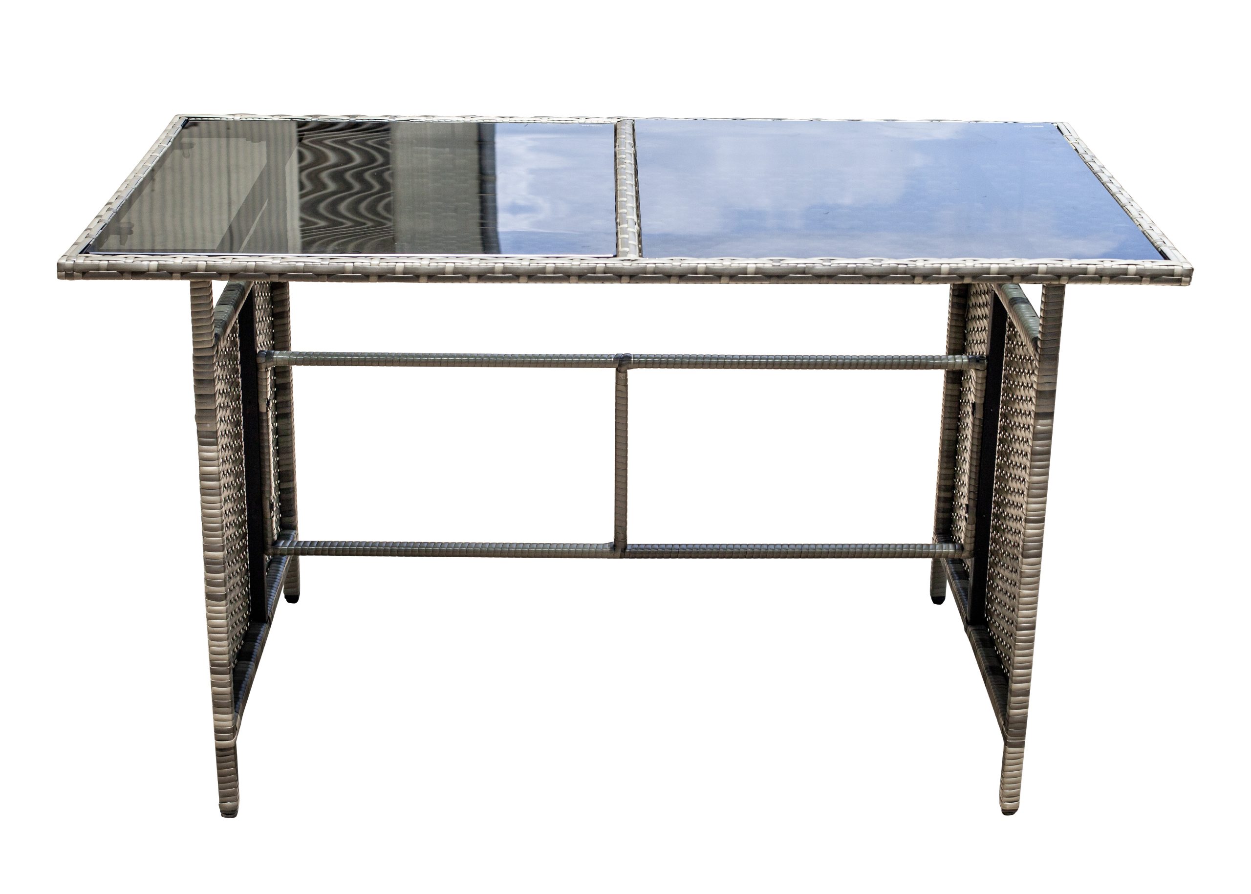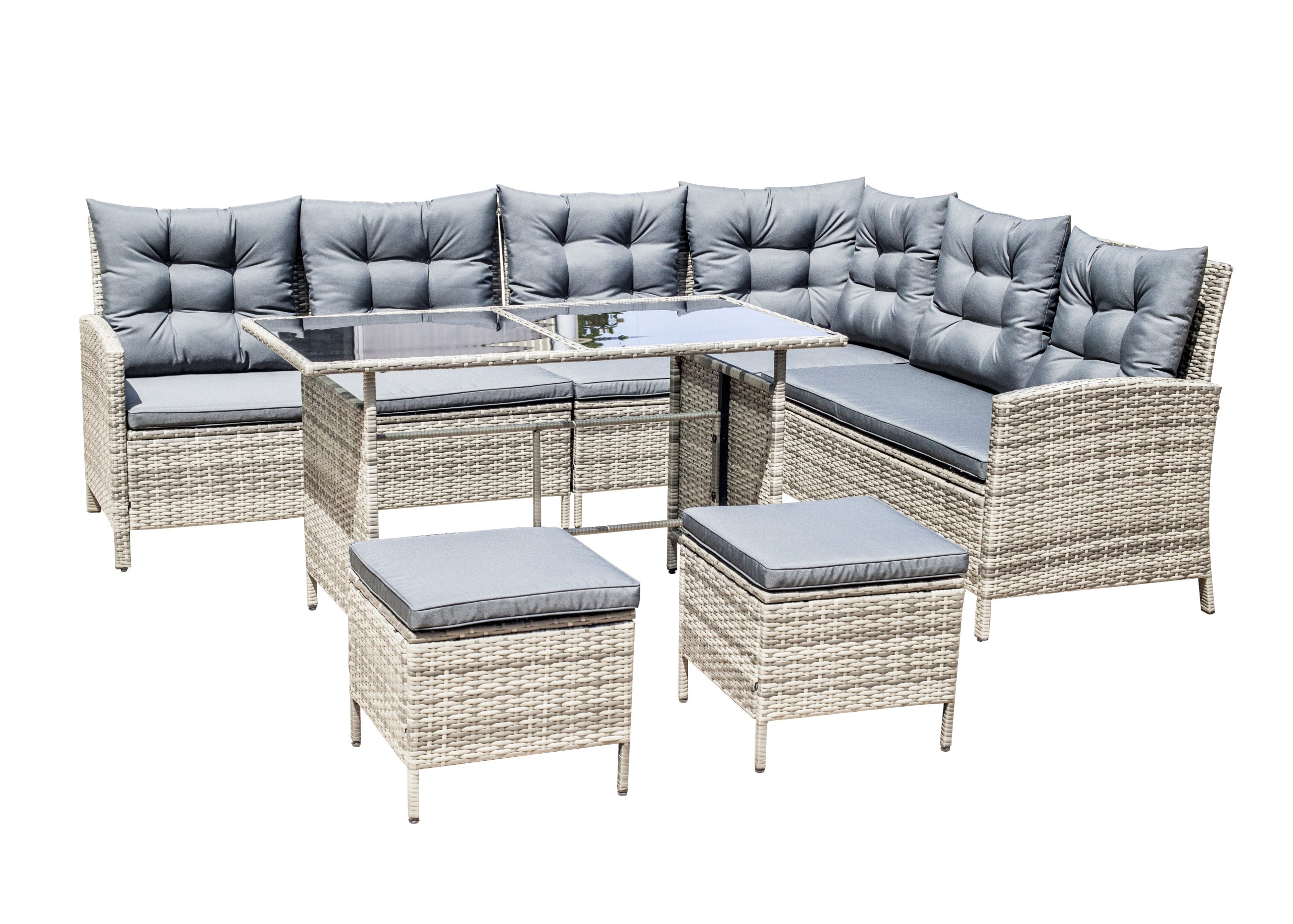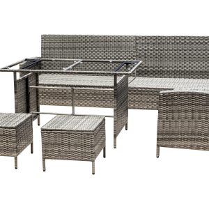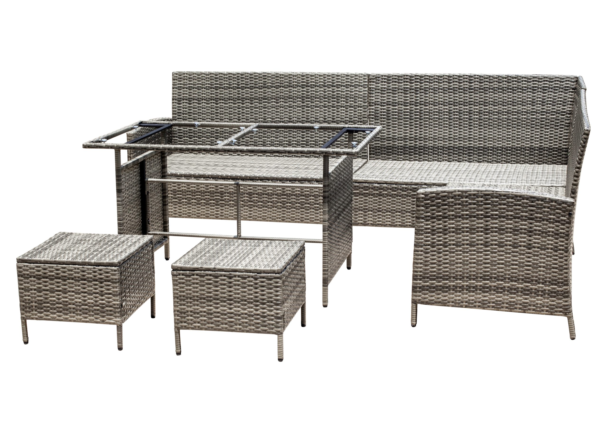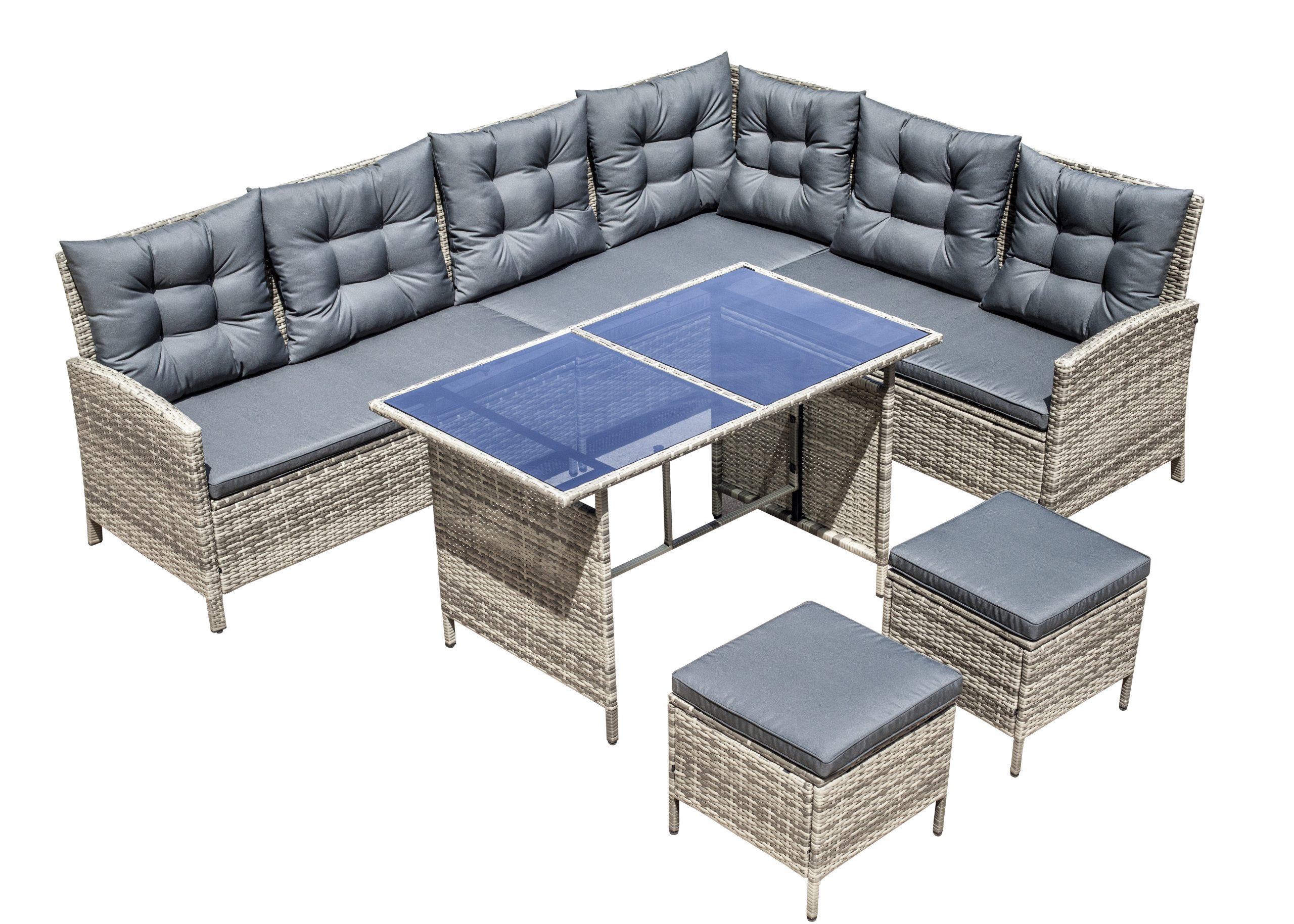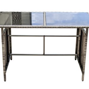 Steel frame ,grey flat rattan, grey seat cushion 5cm and pillow 12cm,